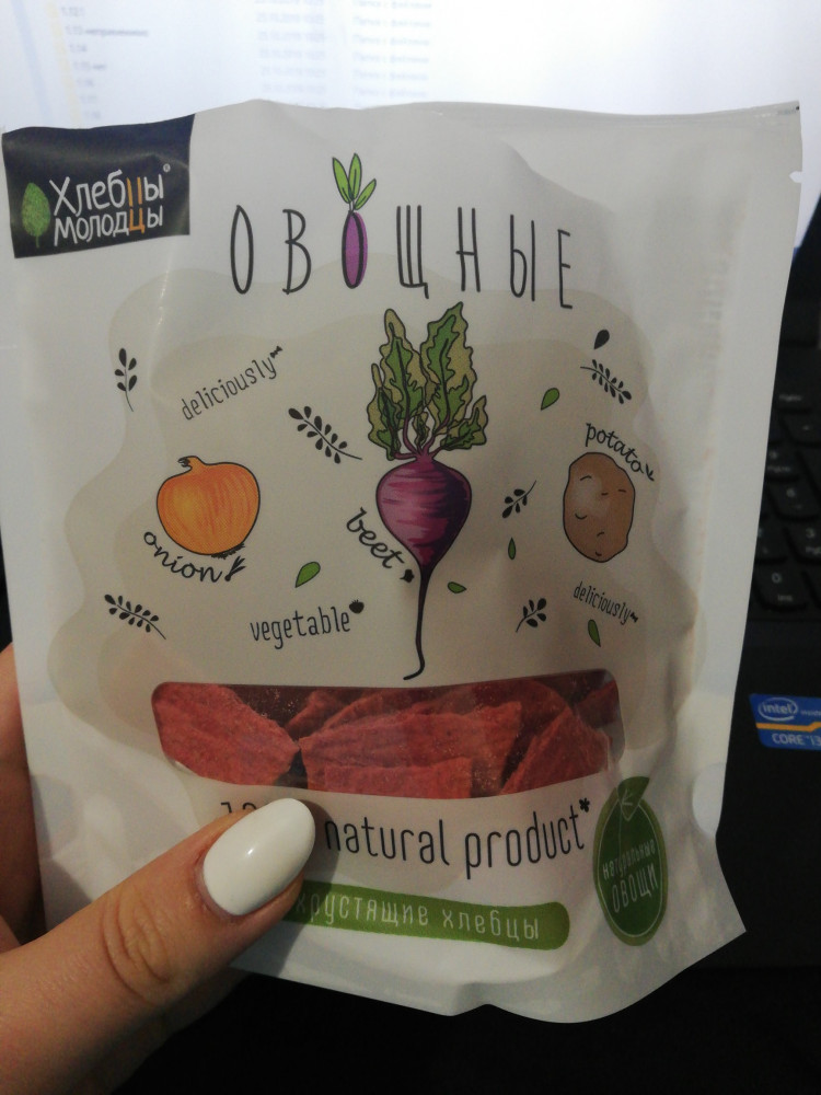 Очень понравились чипсы, вкусненькие. В пачке их довольно много, чипсы сытные, много не съешь за раз. Состав натуральный, но не супер полезный, в основе мука, манка и порошки из овощей - картошка, лук, свекла.
