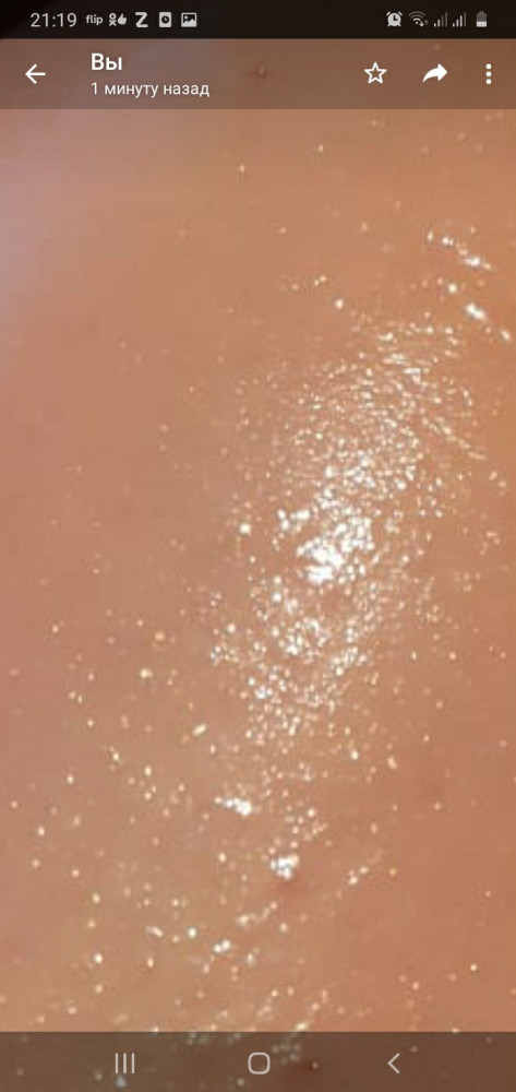 Бутылка достаточно объемная, запах приятный, но на этом всё. В геле слишком много больших блёсток, на фото видно даже (мелкий шиммер присутствует, но крупные блёстки перекрывают всё, к сожалению. Гель хорошо смотрится на загорелой коже и при искусственном освещении.