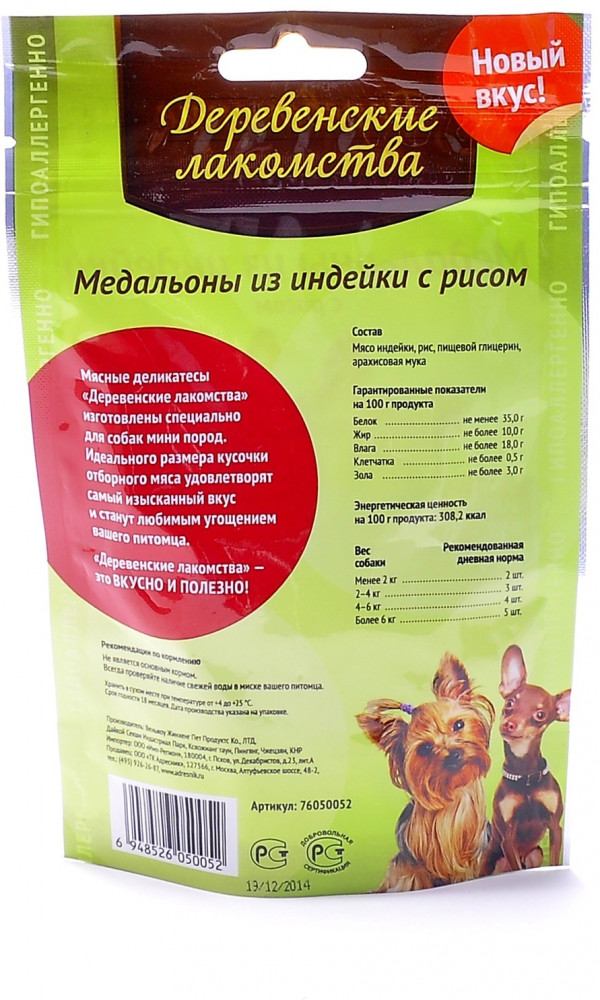 Деревенские лакомства Медальоны из индейки с рисом для малых и миниатюрных пород-20% +56 вкус аппетит качество безопасность питательность