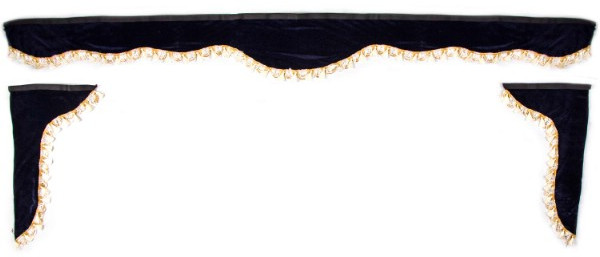 Ламбрекен служит украшением лобового стекла грузовых автомобилей, а также может защитить от прямых солнечных лучей. В комплект входит один ламбрекен на лобовое стекло и две боковые шторки, а также он укомплектован двусторонней лентой-липучкой для крепления. Ламбрекен лобового стекла изготовлен из приятной и очень нежной бархатной ткани. Бархат обладает рядом полезных свойств, он стойкий к светопропусканию, что позволяет ему долго не выгорать на солнце. Перед применением рекомендуется отпарить аксессуар утюгом.