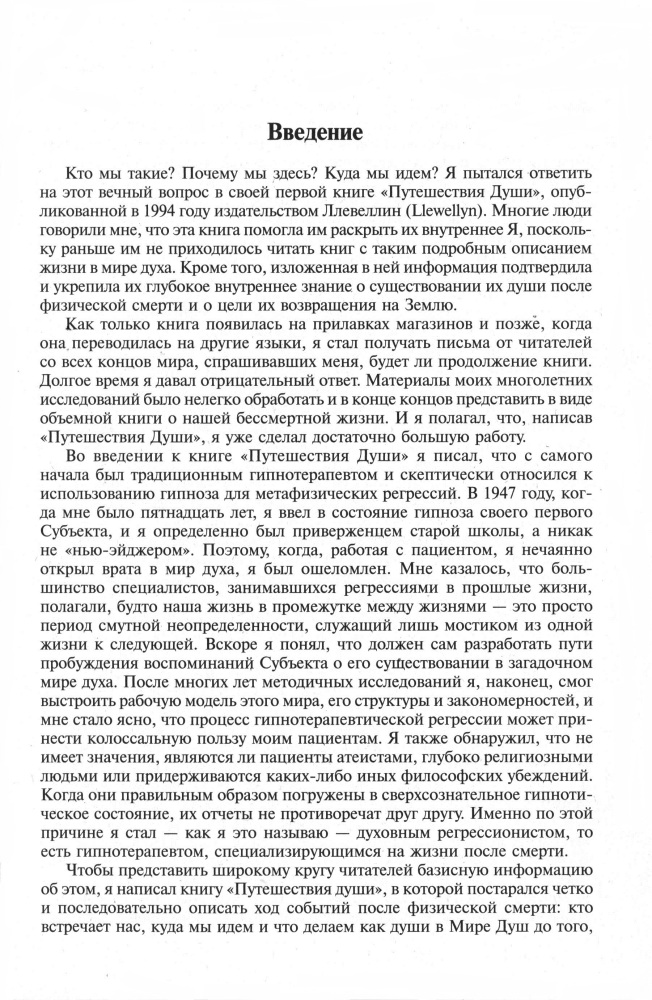 Купил все его книги. Информация насыщенная, наверное, каждый задумывается о том, что же там, за границей сознания. До этого читал многих авторов, но каждый уводил в "свою сторону". А здесь собрана "память" подсознания многих и многих людей. Было очень интересно читать, словно совершал путешествие по самому таинственному и загадочному миру Душ. Рекомендую всем, кто задумывается о смысле жизни, или просто о жизни и смерти, тем, кто не живёт одним днём. Книга будет интересна не только тем, кто увлечён эзотерикой, но и для всех простых смертных.