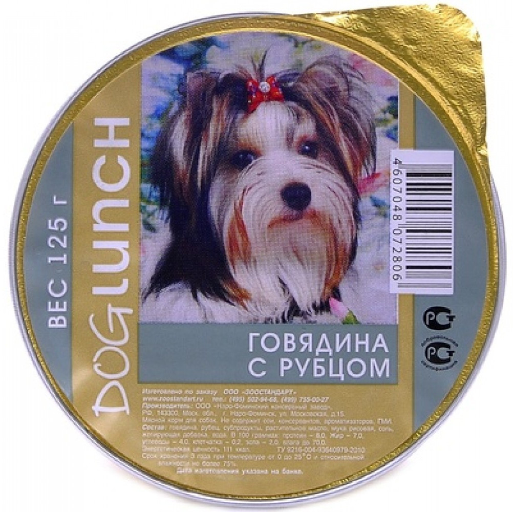 Дог ланч Консервы для собак с говядиной и рубцом