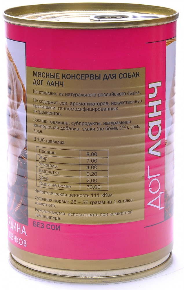 | Качественные корма по доступным ценам! Дог Ланч разработан при участии специалистов в области питания животных, и учитывает все требования качественного и полноценного рациона, а также физиологические особенности питомцев. В каждой банке корма Дог Ланч содержится не менее 60% натуральных свежих мясных продуктов. Отсутствуют соя, искусственные красители и малоценные источники белка. |