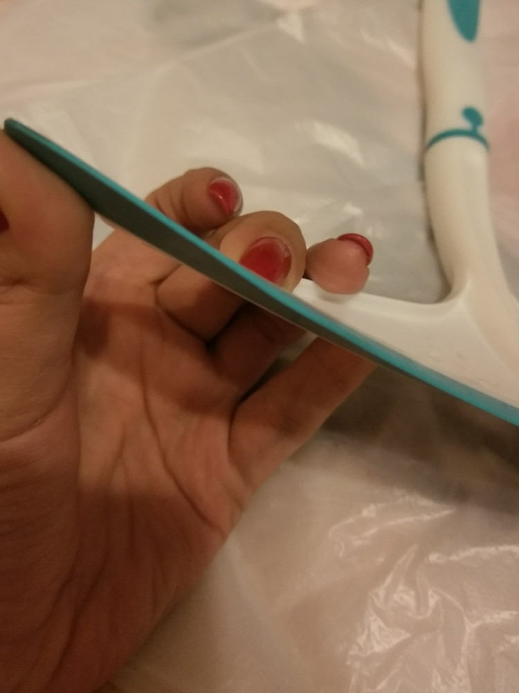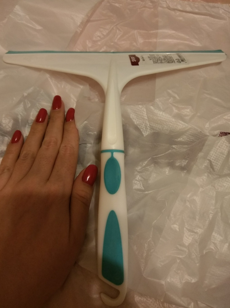 Гибкий, интересный дизайн, без зазоров и лишнего пластика, с удобной ручкой с резиновыми вставками (не соскользнет в мокрых и мыльных руках), имеет крючек для удобства хранения.