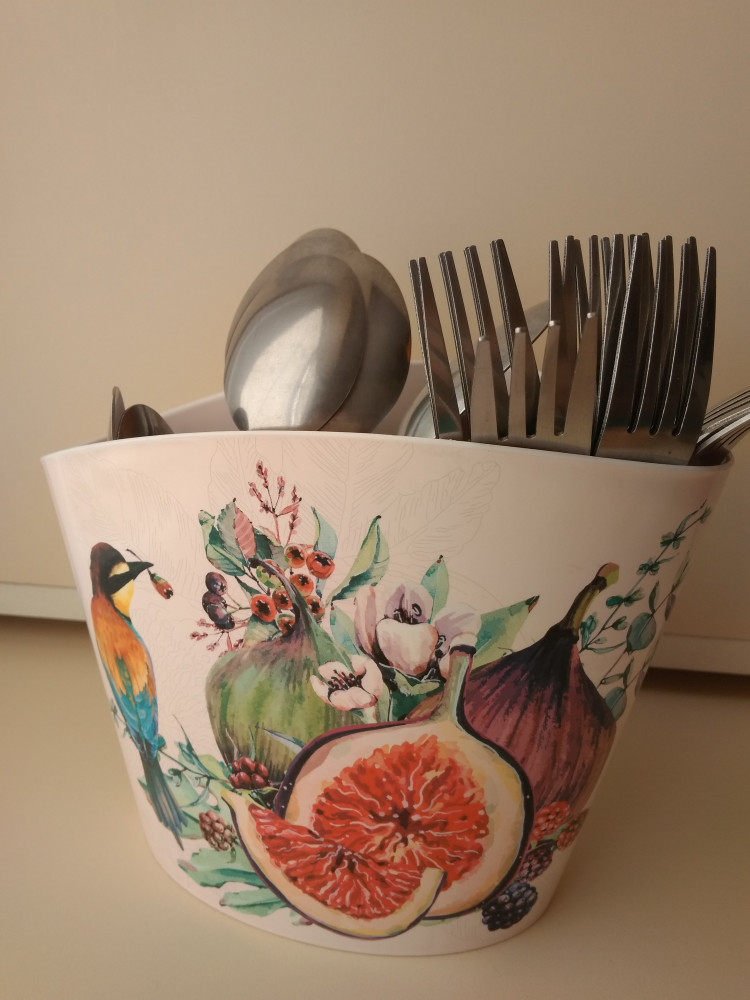 Отличный органайзер для столовых приборов: красивый рисунок с обеих сторон, вместительный, рекомендую!