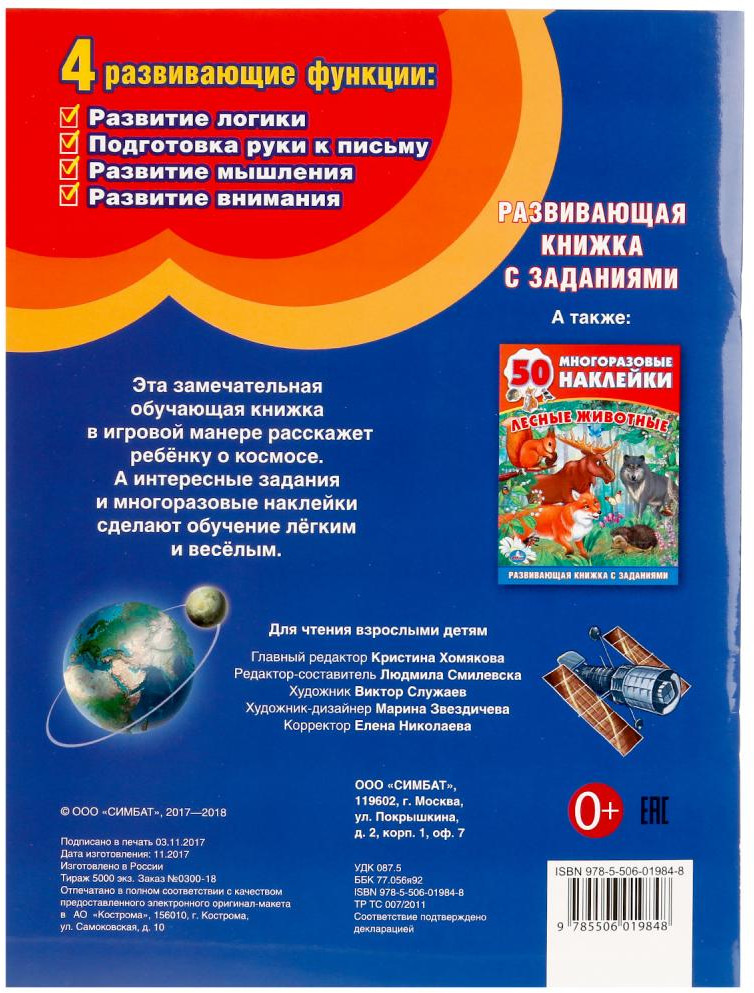 УМка Развивающие наклейки с заданиями «Космос»В данный момент этот товар отсутствует в продаже. Возможно, у нас найдется аналогичный или похожий товар здесь. Серия: Многоразовые наклейки Издание содержит различные развивающие задания, иллюстрации персонажей и повествовательные заметки. Дополняет комплектацию данного набора 50 ярких красочных наклеек, которыми дети смогут украсить эту книгу. Занимаясь и играя с этой книгой, дети смогут расширить свой словарный запас и увлекательно провести свое свободное время. |