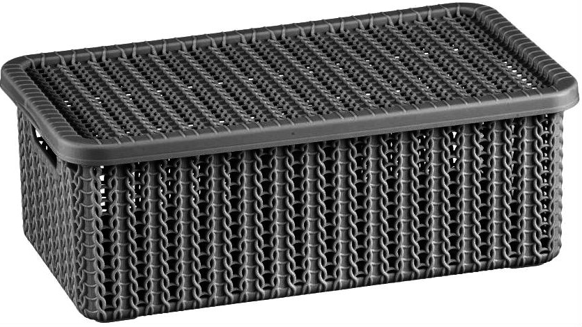 Корзинка Вязание (9,5 × 15 × 27 см) хорошего качества. Я купила розовую. Крышка закрывается хорошо. Смотрится корзинка очень красиво. Действительно, как вязание и крышка, и сама корзиночка. По размеру можно многое из мелочей поместить. Например, косметику, нитки для шитья и т.д. Я купила несколько таких корзиночек для подарков. Конечно, всем понравится, уверена. Отличная корзиночка! Да и вся эта серия Вязание очень красивая!