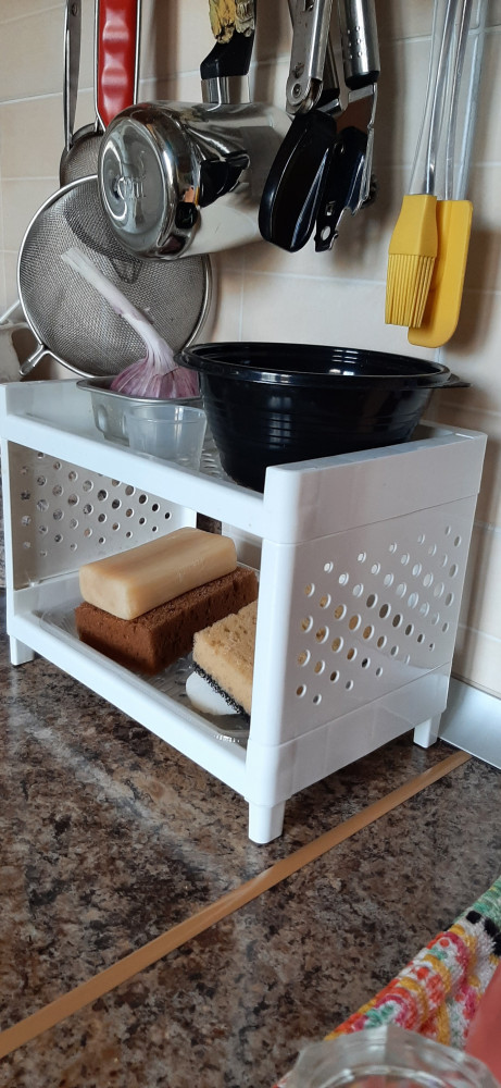 Очень удобно. Казалось бы не такая уж большая полочка, но мелочи заняли свое место и стало намного аккуратнее не кухне