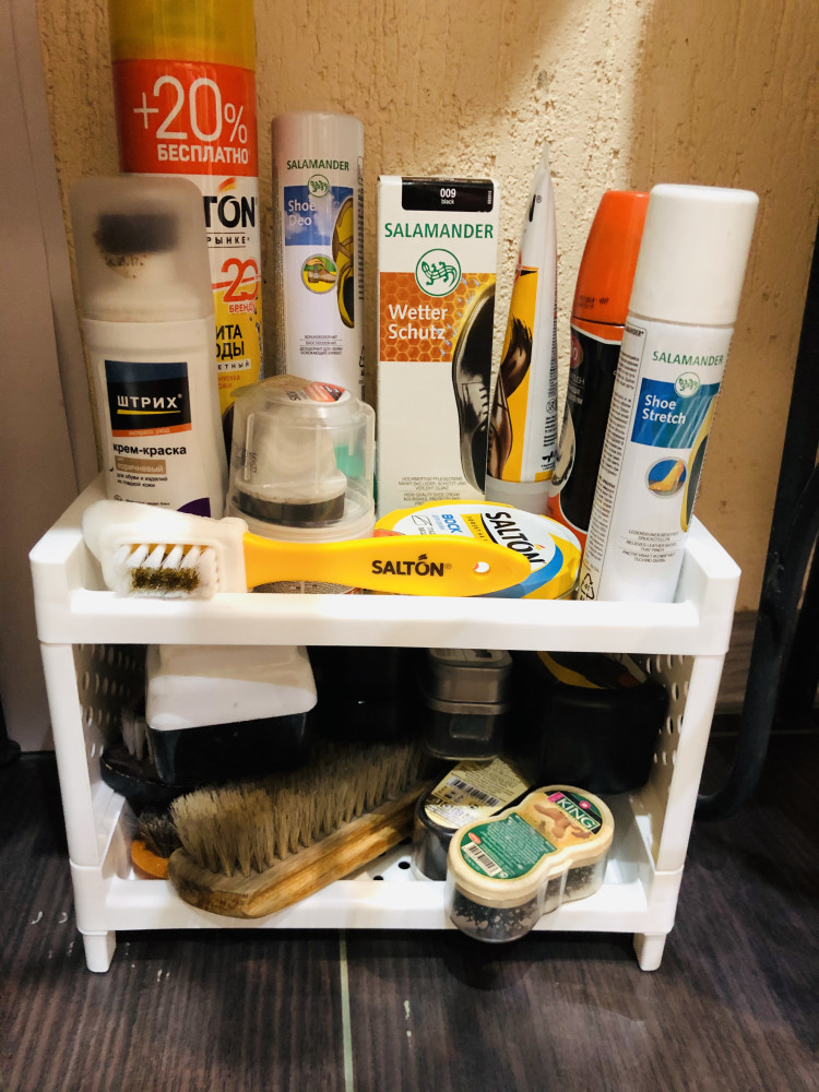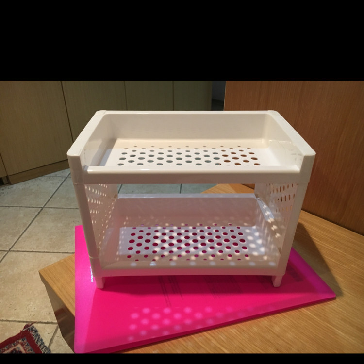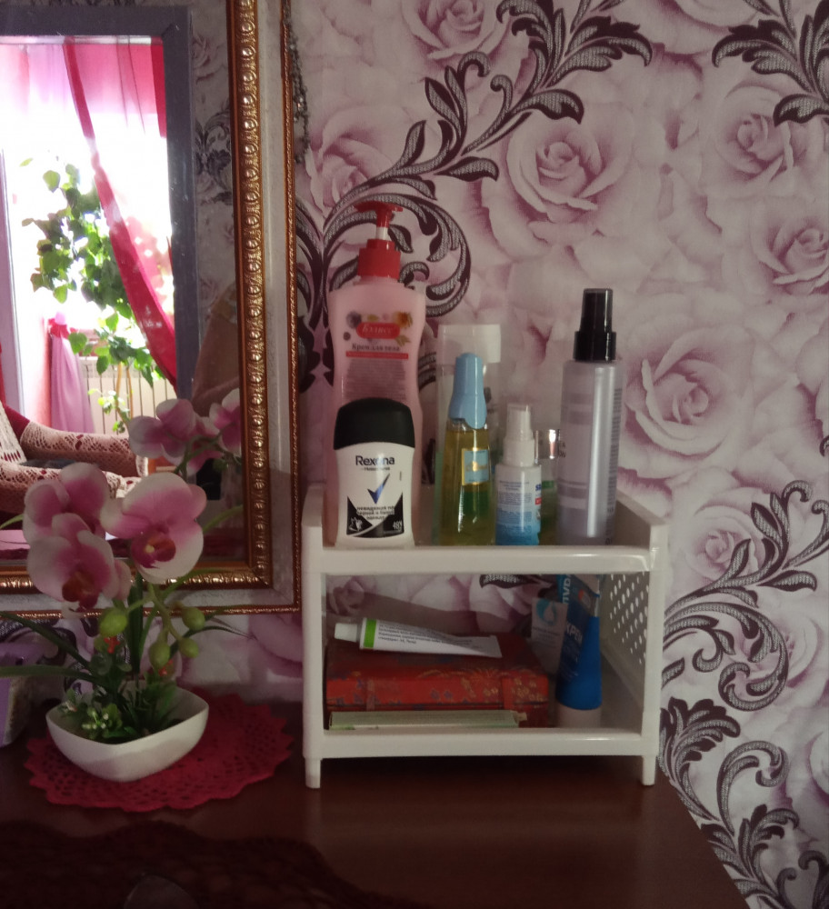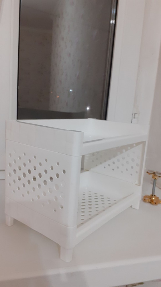 Полочка хорошая, пластик крепкий, собирается просто. Составила ежедневную уходовую косметику, все вошло и на комоде встала идеально, все в одном месте, рекомендую тем кто любит удобные мелочи.