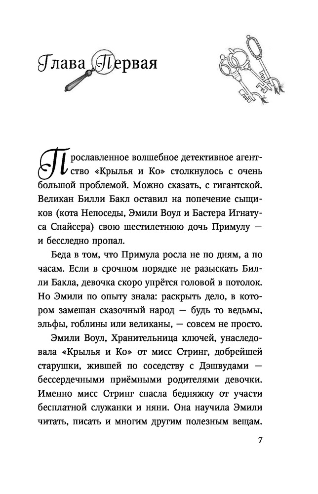 Дело о пропавшем великанеВ данный момент этот товар отсутствует в продаже. Возможно, у нас найдется аналогичный или похожий товар здесь. Серия: Крылья и Ко. Волшебное детективное агентство Когда на пороге детективного агентства «Крылья и Ко» появился великан Билли Бакл, ничто не предвещало беды. Он всего-то попросил присмотреть за его дочуркой Примулой. Но вот незадача: спустя несколько дней Билли так и не вернулся. Он бесследно пропал! Эмили, Непоседе и другим жителям лавки чудес нужно поскорее выяснить, куда же исчез Билли, ведь Примула растёт так быстро, что вот-вот разрушит дом детективов! Но что, если с Билли случилась беда? Есть все основания полагать, что его похитили! Кто же это сделал? И зачем? Салли Гарндер — всемирно известная детская писательница, обладатель Медали Карнеги и других престижных литературных наград. Её книги переведены на 22 языка и продаются миллионными тиражами! Третья книга серии. |