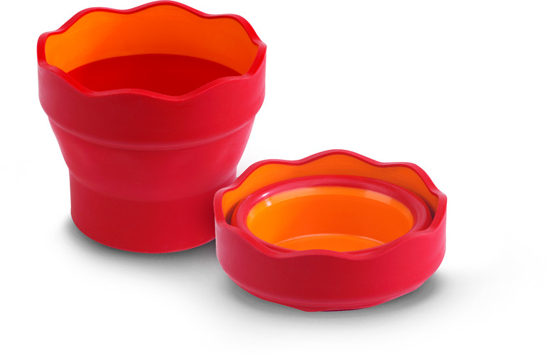 Красный с оранжевым стаканчик понравился, довольно широкий, похож на цветочный горшок. Устойчивый, складывается без проблем.