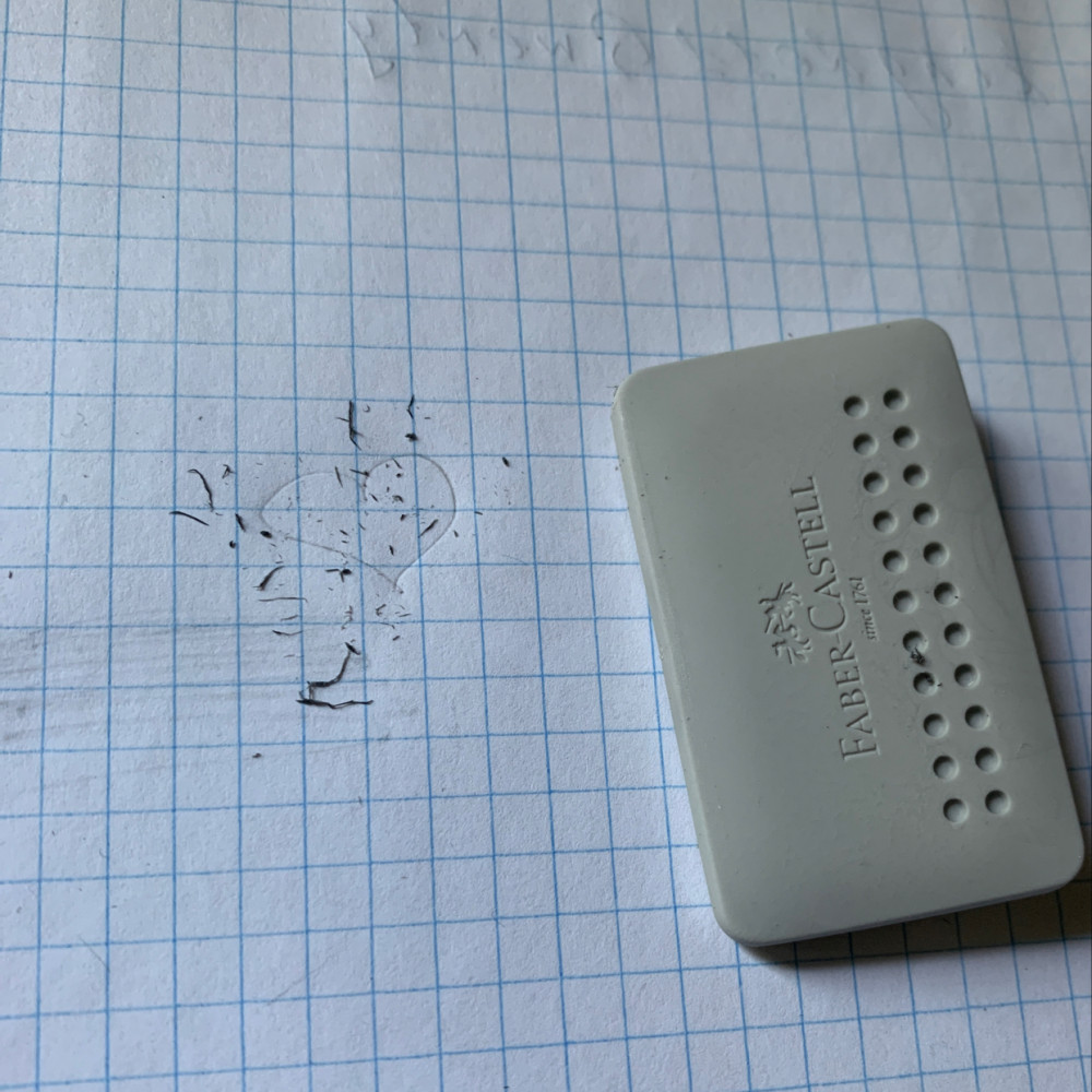 Стирает так себе, особенно мягкие карандаши. А вот мусора от неё много. Ластик не мягкий, я ожидала большего.