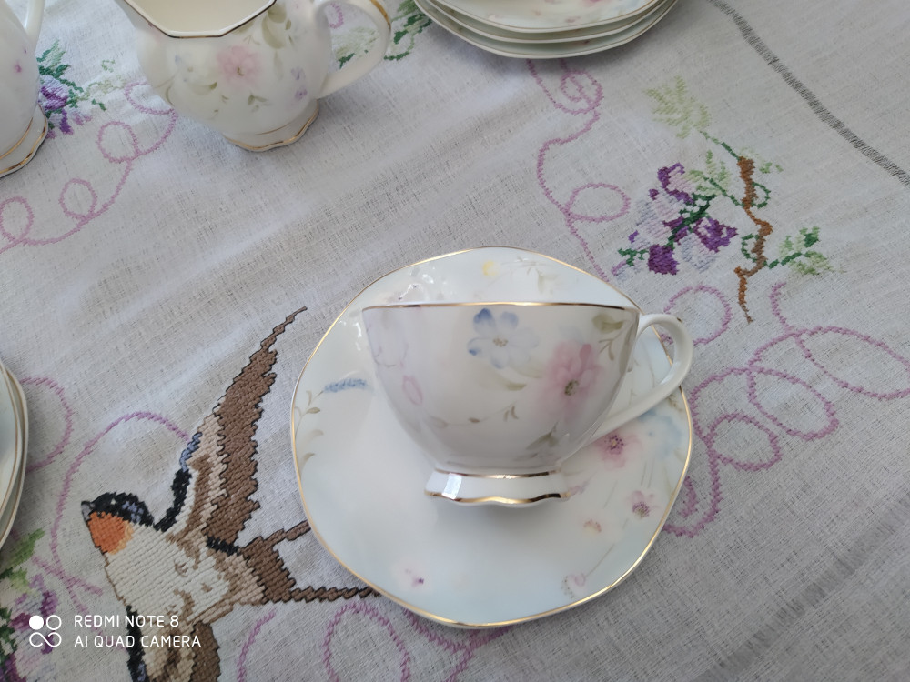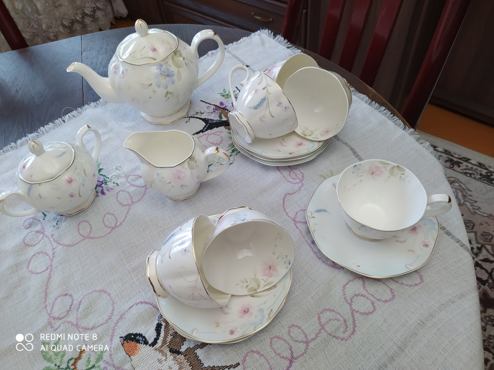 Сервиз понравился - красивый, расцветка нежная, весенняя, радует глаз. Очень довольны покупкой. Весь сервиз немного волнистый. Спасибо Flip!