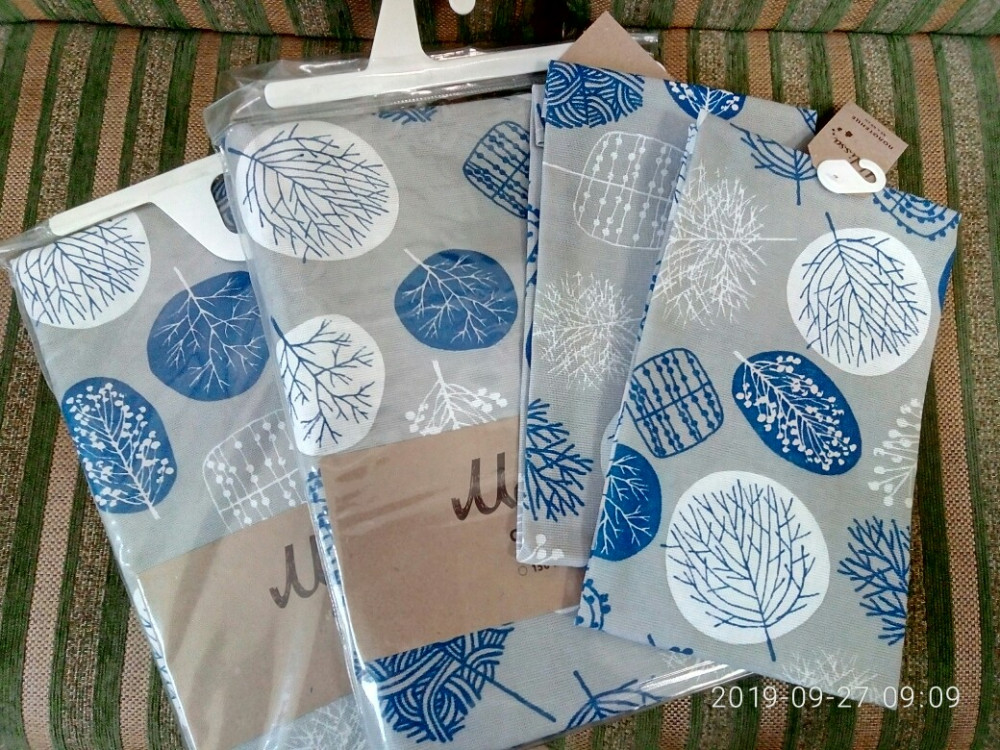 Этот товар я ожидала почти три недели, но полученное меня расстроило. Заказывала я скатерть, полотенце и салфетку и всё это в двух экземплярах. Была у меня на них интересная задумка.К качеству претензий нет (плотная ткань типа рогожки, аккуратный пошив, четкий рисунок, хорошая упаковка) - у меня этот комплект с удовольствием купила сотрудница. Но вот цвет оказался совсем не тот. Мне нужен был темный синий цвет как на правом нижнем фото и в характеристике товара. Прибыл же светло-серый со светло-сине-бирюзовым рисунком. Если кому-то не так важен цвет или, наоборот, такой светлый даже предпочтительнее, то рекомендую к покупке.