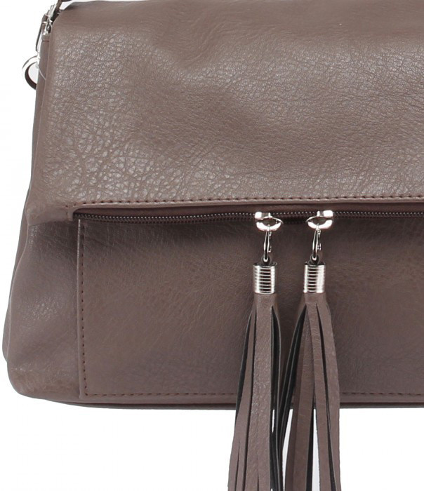 Снаружи: Сумка с клапаном, застежка на магнитной кнопке. На клапане вместительный карман на молнии. На передней стенке карман для мелочей. На задней стенке вместительный карман на молнии. Имеется плечевой ремень.
