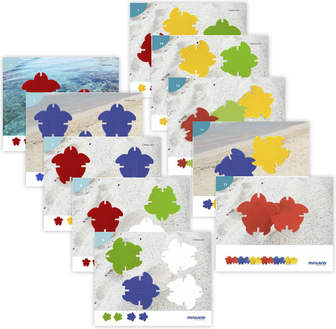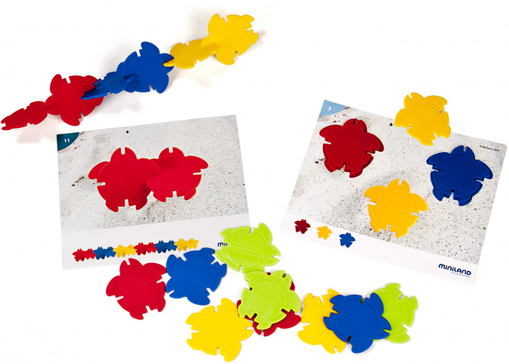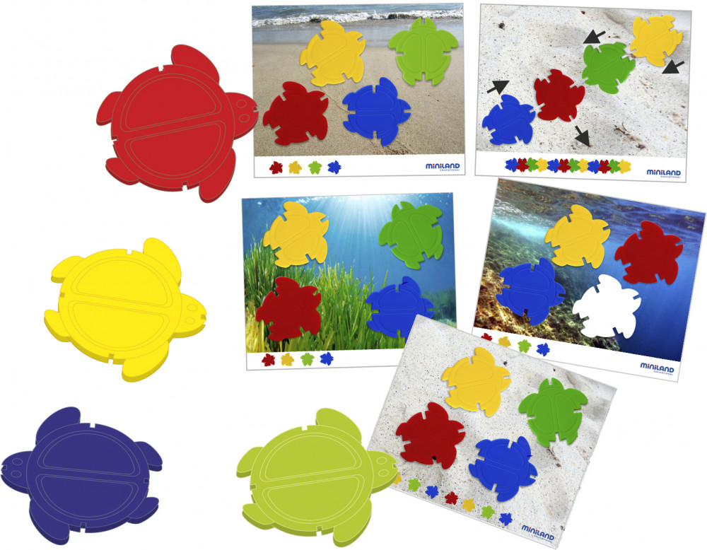 Miniland Набор обучающий «Цветные черепашки»В данный момент этот товар отсутствует в продаже. Возможно, у нас найдется аналогичный или похожий товар здесь. В набор входят цветные черепашки, которые одновременно являются фишками и звеньями, которые можно соединять в цепочки. Для выполнения упражнения нужно определить цвет и расположить черепашек так, как указанно в заданиях, которые имеют два уровня сложности. С помощью этого обучающего набора ребенок научится различать цвета, получит начальные представления о пространстве и топологии, разовьет навыки классификации и сортировки предметов по размерам, цветам. |