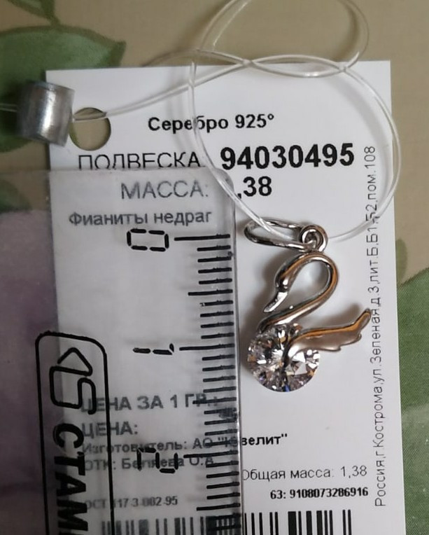 Отзывы «Подвеска из серебра c фианитом «Лебедь»»