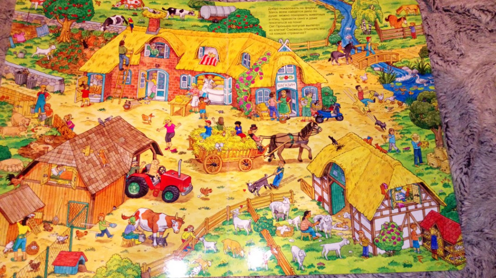 Книга очень понравилась, красочная, страницы плотные, ребёнок может самостоятельно переворачивать странички и не нужно переживать что порвёт, дочке 1,6 листает с удовольствием рассматривает картинки.