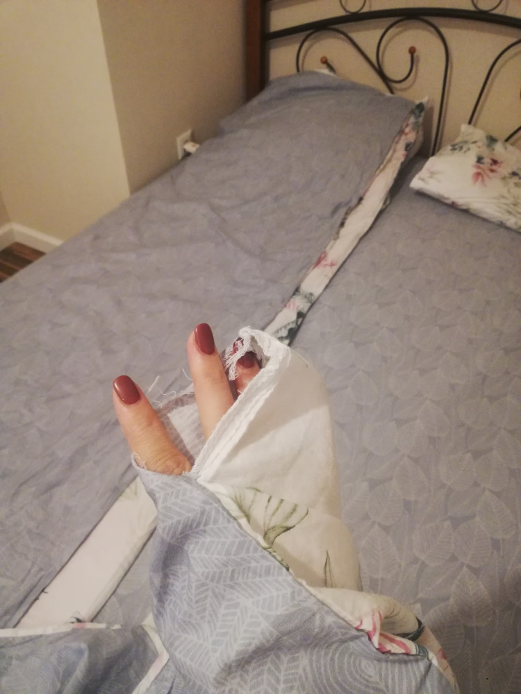 комплект цветом чуть бледнее чем на картинке. Серая ткань простыни и внутренней части пододеальника качеством лучше (плотнее плетение) чем светлая (цветная) ткань. Светлая ткань пододеяльника имеет менее плотное плетение из-за чего, я полагаю, она больше мнется и немного прозрачнее. И еще момент, один из пододеяльников приехал с небольшим браком, был немного распорот угол, точнее не прошит. Пришлось зашивать самой, так как увидела брак только когда комплект уже постирала и стала застилать. В целом комплект красивый, ткань мягкая, приятная, рисунок не линяет. Недостатки, наверно, можно считать были компенсированы ценой (скидкой). Комплекты из более качественного сатина в разы дороже.