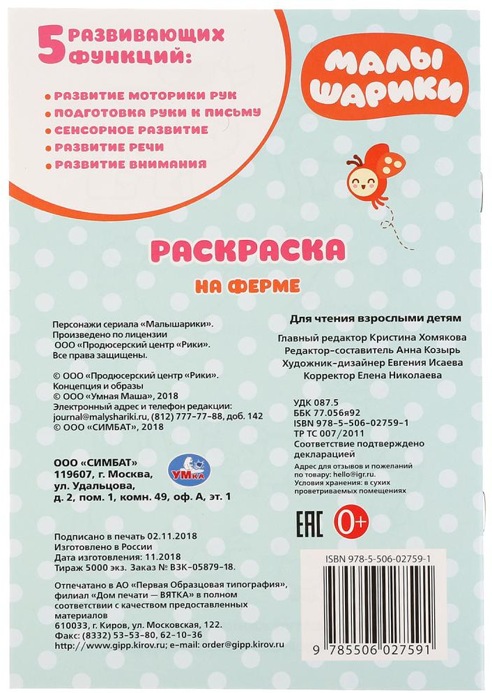 💳 Оплатить за товар можно при получении 🇰🇿 Есть бесплатная доставка по Казахстану от 1 дня 🎁 Копите бонусы с каждой покупки Серия: Первая раскраска Любимые герои мультфильма теперь на страницах раскрасок! Развивающая раскраска для самых маленьких «Ферма. Малышарики» привлечет внимание ребёнка крупными яркими образами, интересными сюжетами и забавными диалогами. Удобный формат раскраски позволяет взять её с собой на прогулку или в гости к друзьям. |