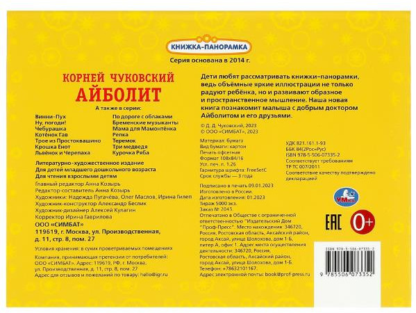 Серия: Книжка-панорамка Малыши любят рассматривать книжки-панорамки, ведь объемные яркие иллюстрации не только радуют ребенка, но и развивают образное и пространственное мышление. Книжка-панорамка поможет малышу встретиться с любимыми героями мультфильмов и попасть в мир сказки! Для детей дошкольного возраста. |