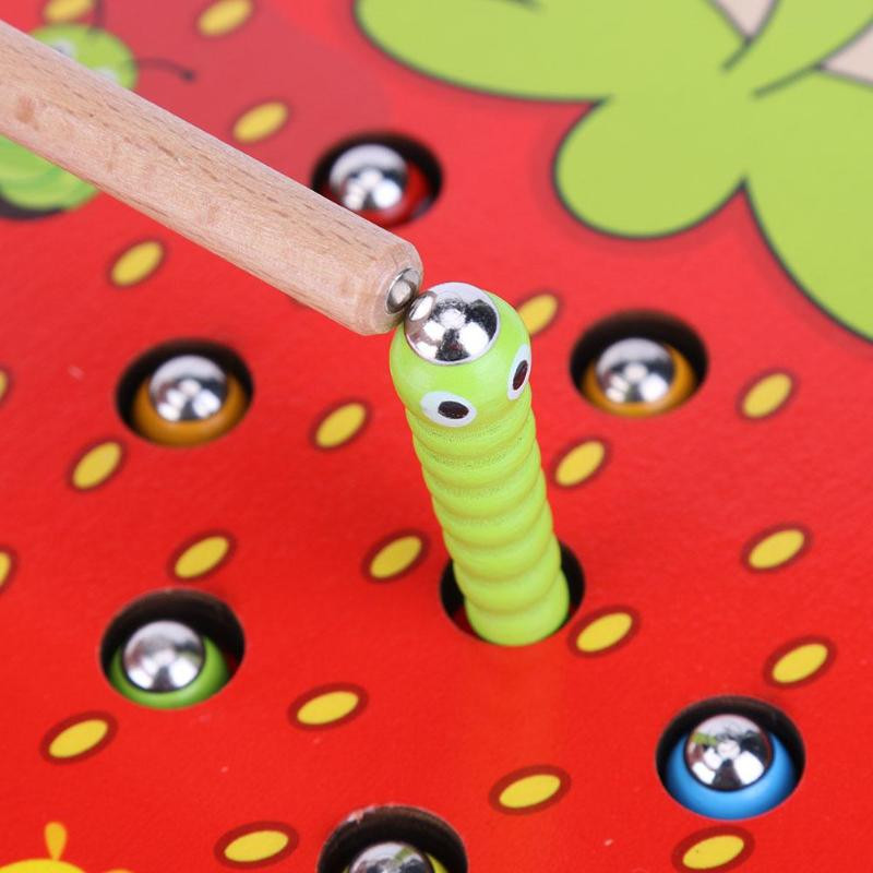 Oray Игра магнитная «Поймай червяка в клубнике»В данный момент этот товар отсутствует в продаже. Возможно, у нас найдется аналогичный или похожий товар здесь. Развивающая деревянная игрушка на магнитах. Малышу нужно достать червячков из клубники при помощи палочки с магнитом. Очень красивая и качественная. Подходит для детей от года. Палочка очень удобна для захвата, поэтому с игрой справятся дети от года. Тренируем моторику, пальчиковый захват, умение держать карандаш, глазомер, межполушарные связи. Учим цвета и счет. В комплекте вы найдете яркую сочную клубнику, 10 разноцветных червячков (5 цветов) и удобная палочка с магнитным наконечником. |