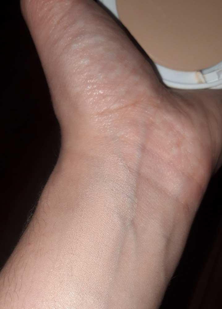 Купила пудру :) Само название "пудра" ввело меня в заблуждение, так как хотела сухую. Нужно внимательнее читать описание 😉 это плотный тональный крем в банке. Оттенок взяла светлый, неплохо подстраивается под кожу (фото свотч), наносится легко спонжем. Покрытые очень плотное, несовершенства и покраснения маскирует хорошо. Сидит хорошо около 4 часов, потом просто плешиво ползёт, несмотря на то, что наносился на базу этой же фирмы. Сильно подчёркивает шелушения (на фото кожа после лёгкого пилинга, у других т. средств такого замечено не было). Из плюсов- компактность, можно быстро поправить мэйк на ходу. Преимущества: + spf 50, + неплохой состав, +внутри зеркало, +отдельное отделение для спонжа, + сам спонж хорошего качества + компактный. Недостатки: - сильно пачкает одежду, тяжело отстирать. - подчёркивает шелушения - сидит на лице как маска - не стойкий, плывёт быстро особенно на Т-зоне. - большой расход, спонж много впитывает - сушит кожу, нет увлажнения. Ставлю 4 звезды тем не менее, т.к для меня на первом месте безопасный состав 😄. Ставьте 👍 если был полезен мой отзыв.