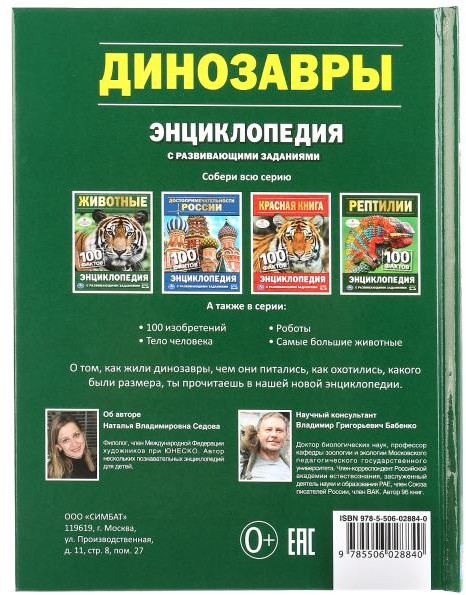 УМка Динозавры. 100 фактов. ЭнциклопедияВ данный момент этот товар отсутствует в продаже. Возможно, у нас найдется аналогичный или похожий товар здесь. Серия: 100 фактов Энциклопедия с развивающими заданиями «Динозавры» — это книга из новой серии иллюстрированных энциклопедий для чтения и занятий с малышами от ТМ «УМка». На протяжении всей книги ребёнку будут предлагаться развивающие задания, которые помогут запомнить информацию ещё лучше! |