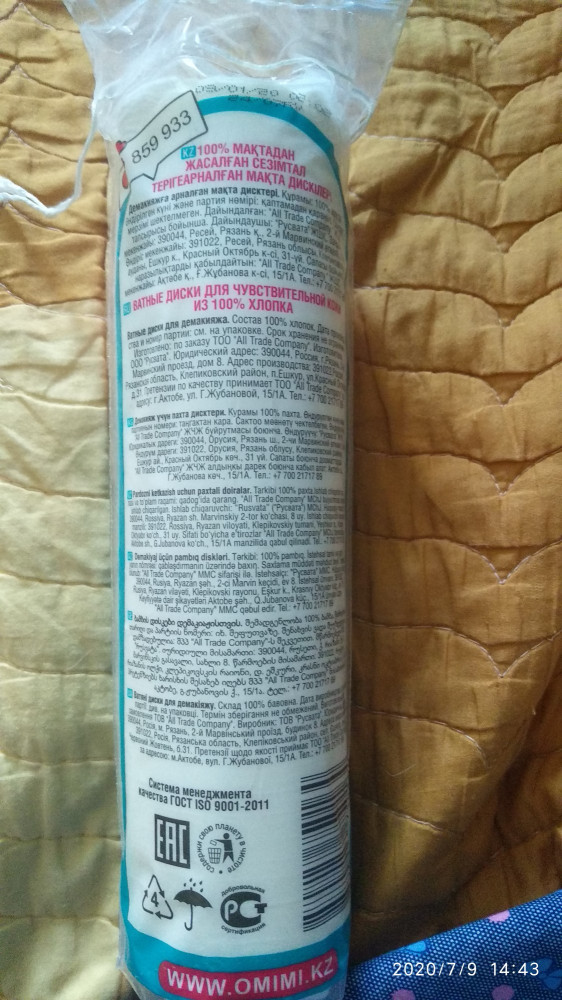 Мне очень понравились эти ватные диски.Косметику хорошо протирает.