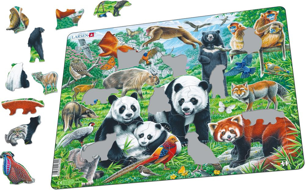 Larsen Пазл «Дикие животные Азии»прочность цветность качество легкость сборки В данный момент этот товар отсутствует в продаже. Возможно, у нас найдется аналогичный или похожий товар здесь. Пазлы Ларсен — это обучающие пазлы. На яркой картинке пазла изображены дикие животные Азии. Собрав всю картинку целиком, малыш сможет познакомиться со многими животными: птицей балобан, бабочкой-парусник, тибетской макакой, черной змеёй, черной выпью, белкой-летягой, азиатским черным медведем, курносой обезьяной, птицей горихвосткой, оленем Мунтжак, тикином, лазоревой птицей, тибетским песцом, серебряным фазаном, пандой, золотым фазаном, глазчатым трагопаном, птицей Белоснежная Муния и другими животными и растениями. |