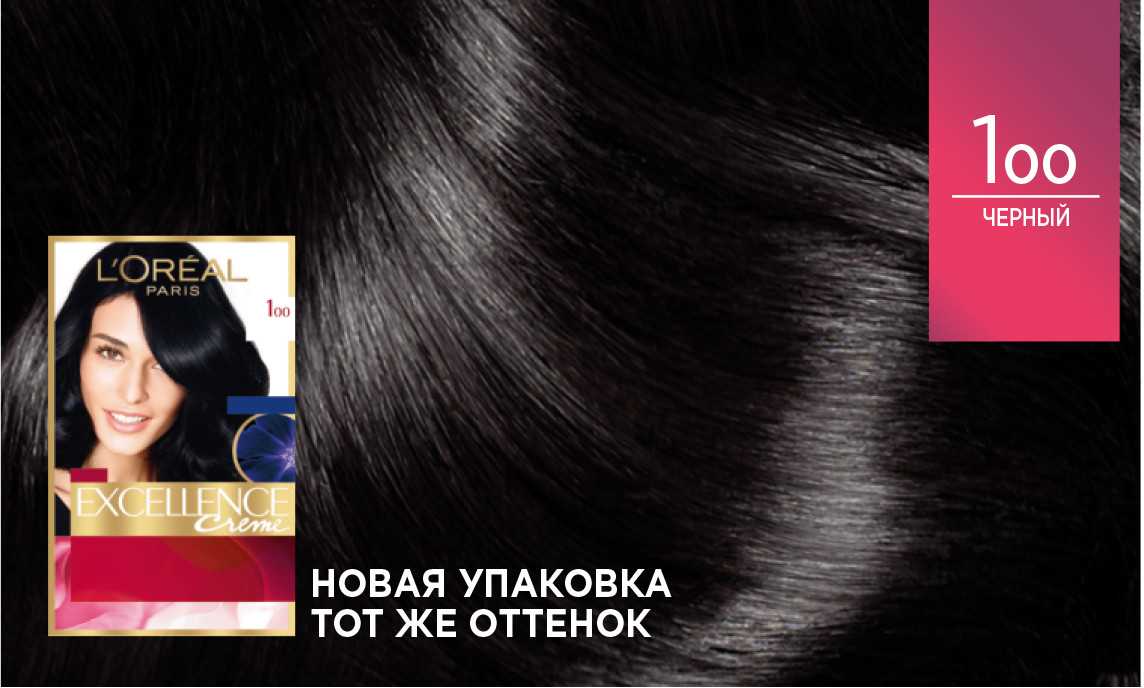 L'Oreal Paris Крем-краска для волос cтойкая «Excellence», оттенок 100 Черный