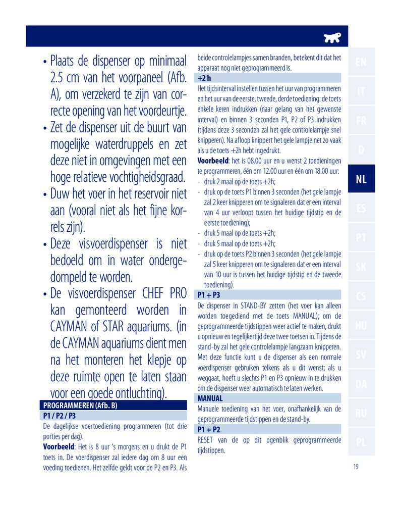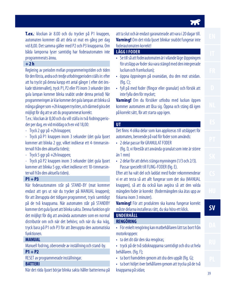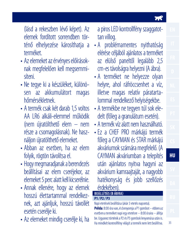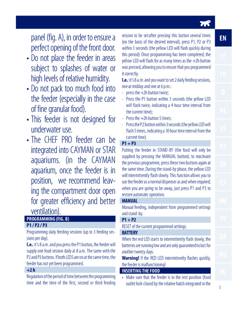 Каждый день ваши рыбы будут дважды получать корм, когда вы не имеете возможности их покормить сами. Каждая порция рассчитана на подачу 14 г корма. Устройство подходит для кормов в виде хлопьев или гранул. Время автономной работы составляет 14 дней.