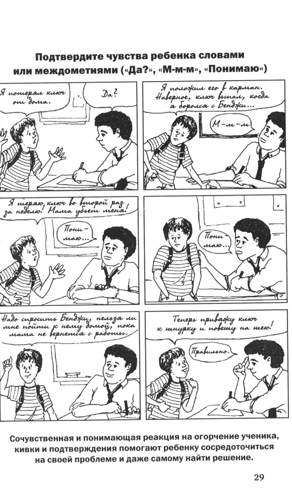 Книга безусловно полезна, но, больший ориентир, сделан на изменение отношения к детям со стороны учителя, а если этого нет, если учителя не считают, что должны тратить свою энергию на понимание детей, что в школу приходят дети чтобы получать знания, а не понимание и поддержку. Всем этим, нужно заниматься родителям, дома, а школа не для этих "мелочей". Так принято у нас в РК, учитель бог, и чтобы он не говорил и как, просто слушай и бойся, что-либо сказать, принимай и живи с этим.