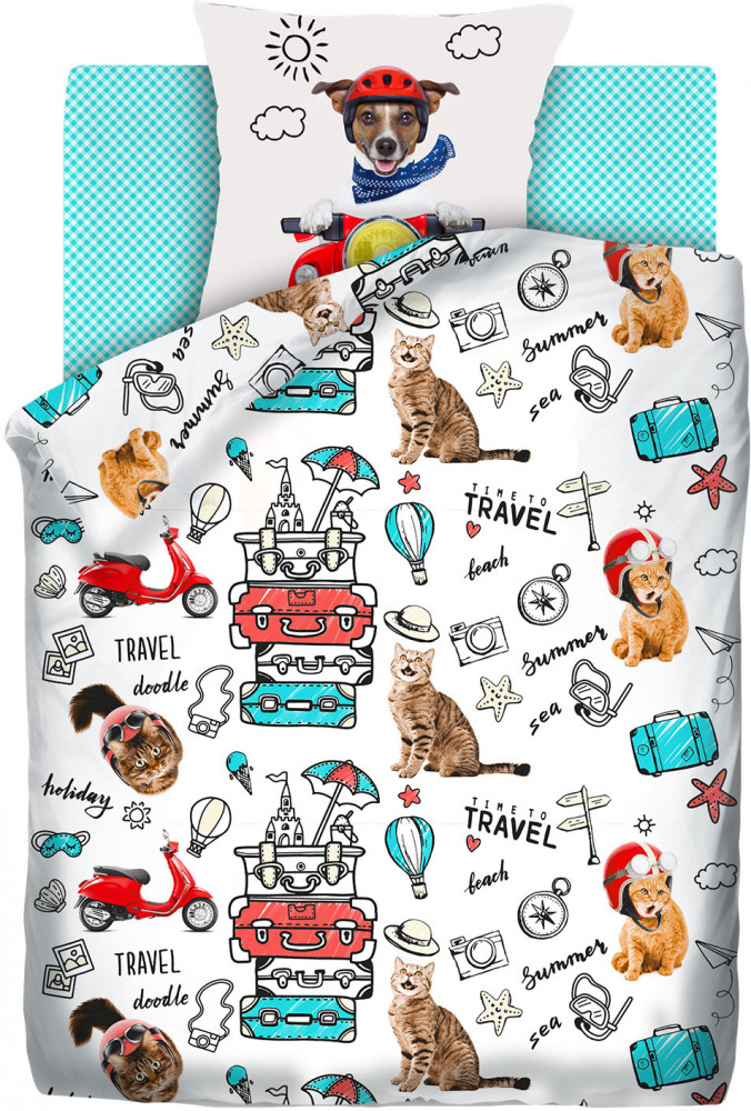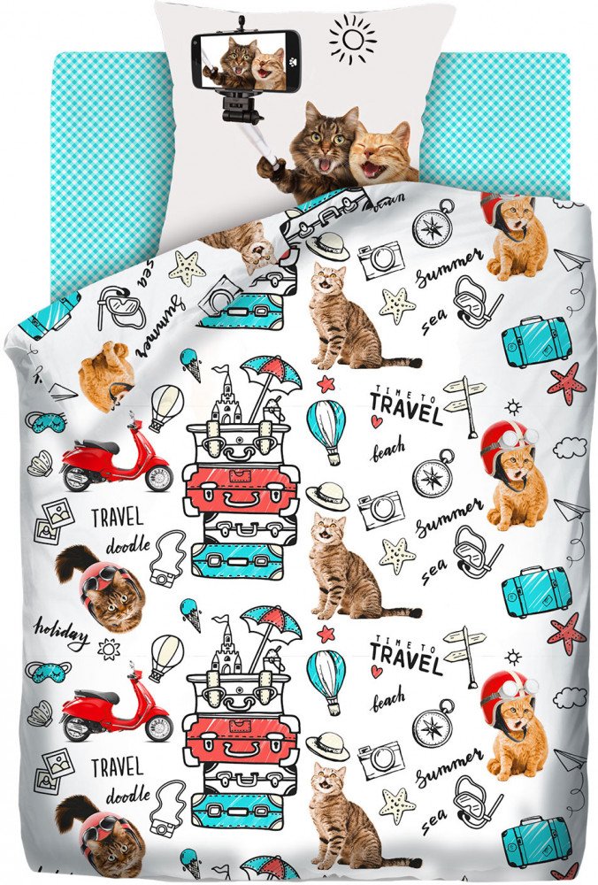 Здравствуйте, купила детское постельное белье, 1,5 размера, очень довольна качеством. Ткань мягкая, приятная на ощупь и чисто х/б без искусственных примесей. Пока не использовала еще. После стирки не знаю какая будет ткань, но кажется она будет еще мягче и приятнее для тела. Расцветка очень веселая и яркая, нескучная, современный дизайн рисунка, наволочка 2 -х сторонняя рисунок можно использовать по настроению (кошки или собака). Товар упакован аккуратно, без деффектов.