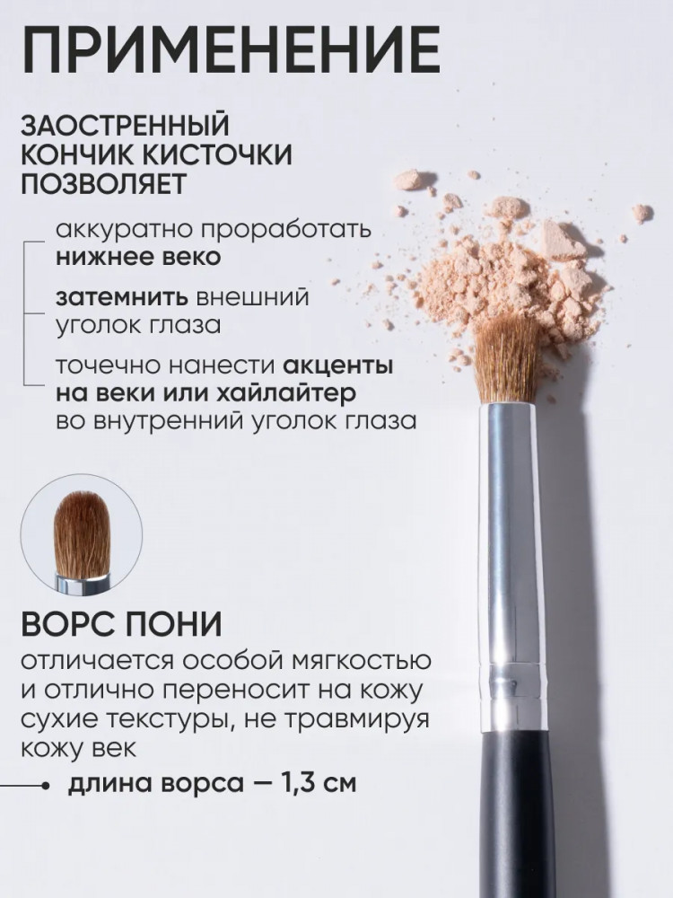 Для такой цены - прекрасные кисти. Данная кисть в форме округлого бочонка, без острого уголка, больше подойдет для растушевки, но и для нанесения в складку века тоже вполне подходит.