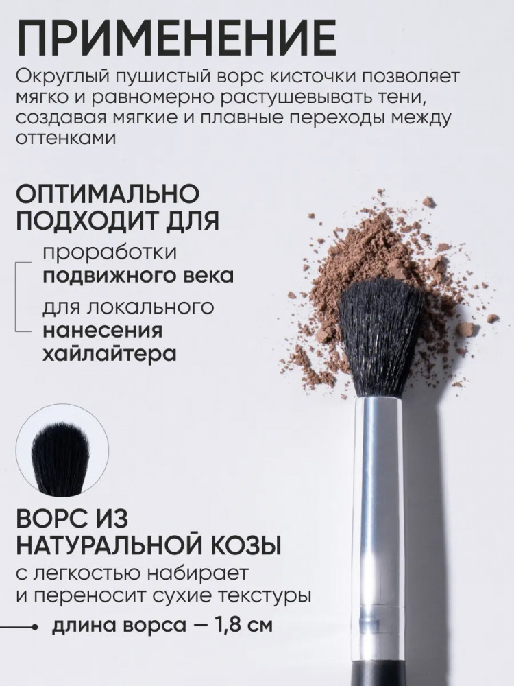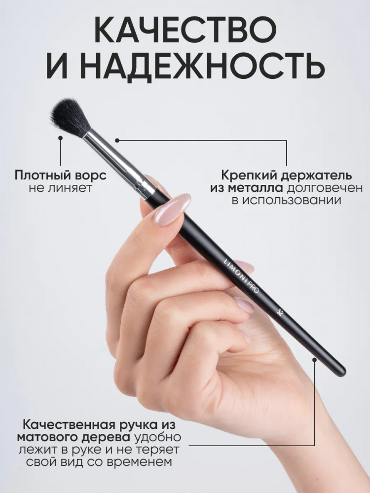 Limoni Кисть для растушевки теней №52-54% +50 хорошая растушёвка плотная набивка не впитывает продукт подходит для кремовых текстур ворс осыпается большой размер