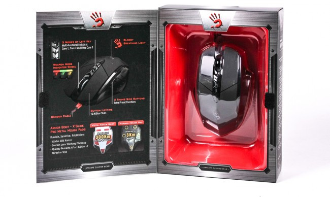 В данный момент этот товар отсутствует в продаже. Возможно, у нас найдется аналогичный или похожий товар здесь. Серия: Bloody Мышь Bloody V7 выполнена в корпусе асимметричной формы, рассчитанной на правшей. Его размеры будут впору обладателям крупных ладоней. Взгляд сразу же цепляется за углы и рубленые формы, которые придают манипулятору брутальный вид, в полной мере соответствующий названию серии. Одно из бесспорных достоинств этой мыши — неприхотливость к материалу и фактуре рабочей поверхности. Сенсор стабильно работает на подавляющем большинстве «бытовых» покрытий, включая и весьма коварные для оптических датчиков полированный камень, лакированное дерево и окрашенный металл.