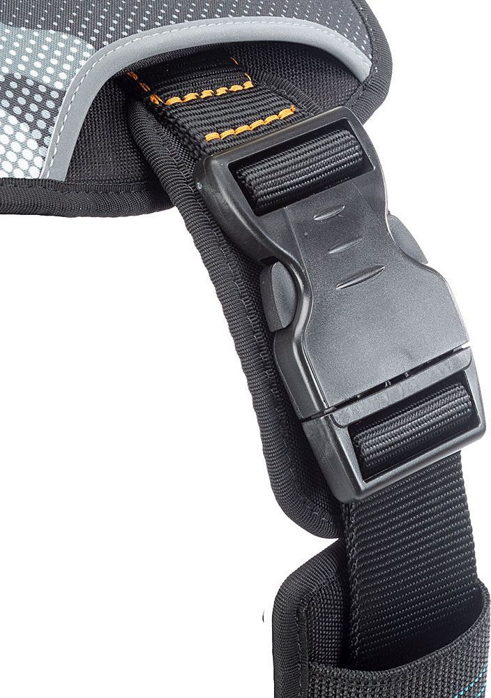 Регулировка посадки аксессуара осуществляется ползунком в нижней части. Застегивается шлейка клипсой из техно-пластика, который отличает высокая прочность, поэтому она выдерживает сильное натяжение. Шлейка выполнена по так называемой Quick fit технологии, что дает возможность аксессуар быстро надевать, снимать и подгонять по размеру.