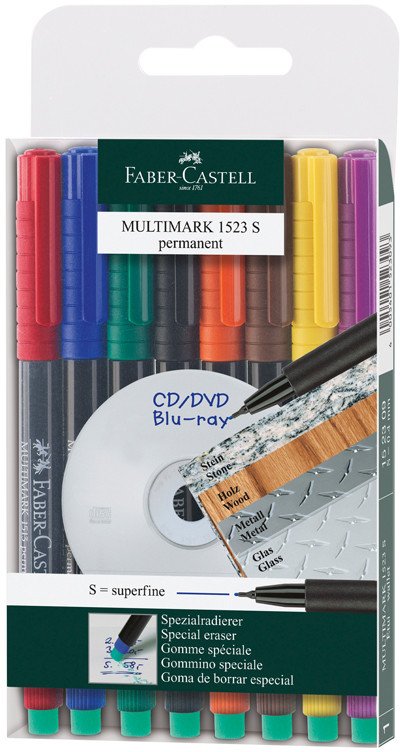 Faber-Castell Набор перманентных маркеровВ данный момент этот товар отсутствует в продаже. Возможно, у нас найдется аналогичный или похожий товар здесь. Серия: Multimark permanent Универсальный перманентный маркер пишет практически на любой поверхности. Яркие чернила насыщенного цвета. Встроенный специальный ластик способен полностью удалять линии, написанные маркером, практически со всех гладких поверхностей, таких как CD / DVD / Blu-ray — диски или прозрачные пленки. |