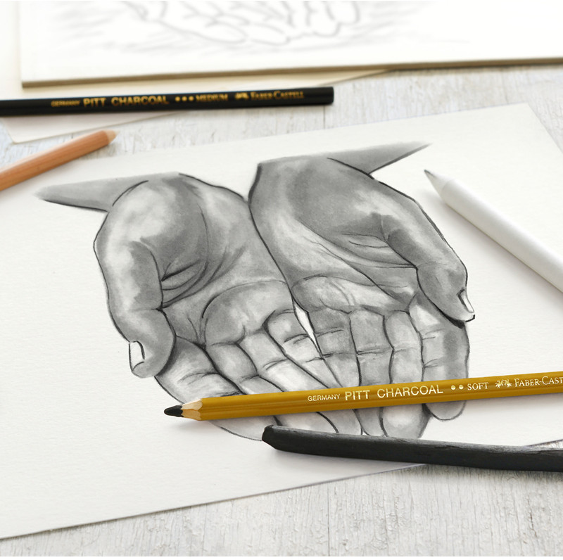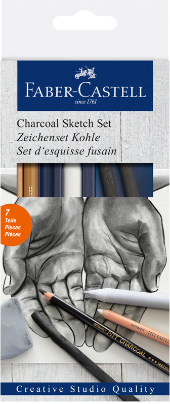 Набор угля и угольных карандашей. В состав набора входят 2 натуральных угля диаметром 6-11мм, угольный карандаш, прессованный угольный карандаш, растушевка и ластик.