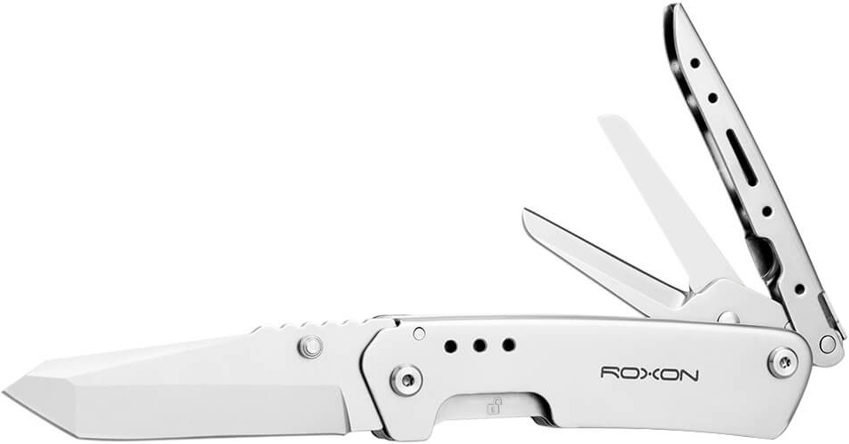 Roxon Нож многофункциональный «KS S501»ножницы сбалансированность острая кромка компактность удобная клипса В данный момент этот товар отсутствует в продаже. Возможно, у нас найдется аналогичный или похожий товар здесь. Модель «KS S501» создана для тех ситуаций, когда может понадобиться не только нож, но и ножницы. Например, она понравится рыбакам. Этот инструмент объединяет 2 функции, главной из которых является именно нож. Лезвие клинка получило форму American tanto. У него гладко заточенная кромка реза с практически прямой линией и резким подъемом к острию. Обух ножа сделан со скосом, который создает эффект фальшлезвия. Ближе к рукоятке на спинке ножа сделано несколько не острых полукруглых зазубрин, которые нужны для более надежного упора пальца. Нож достается из рукоятки при помощи небольшого шпенька на лезвии. |