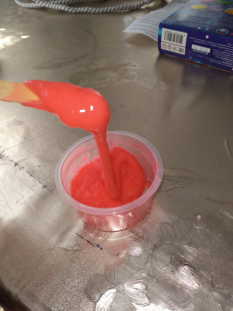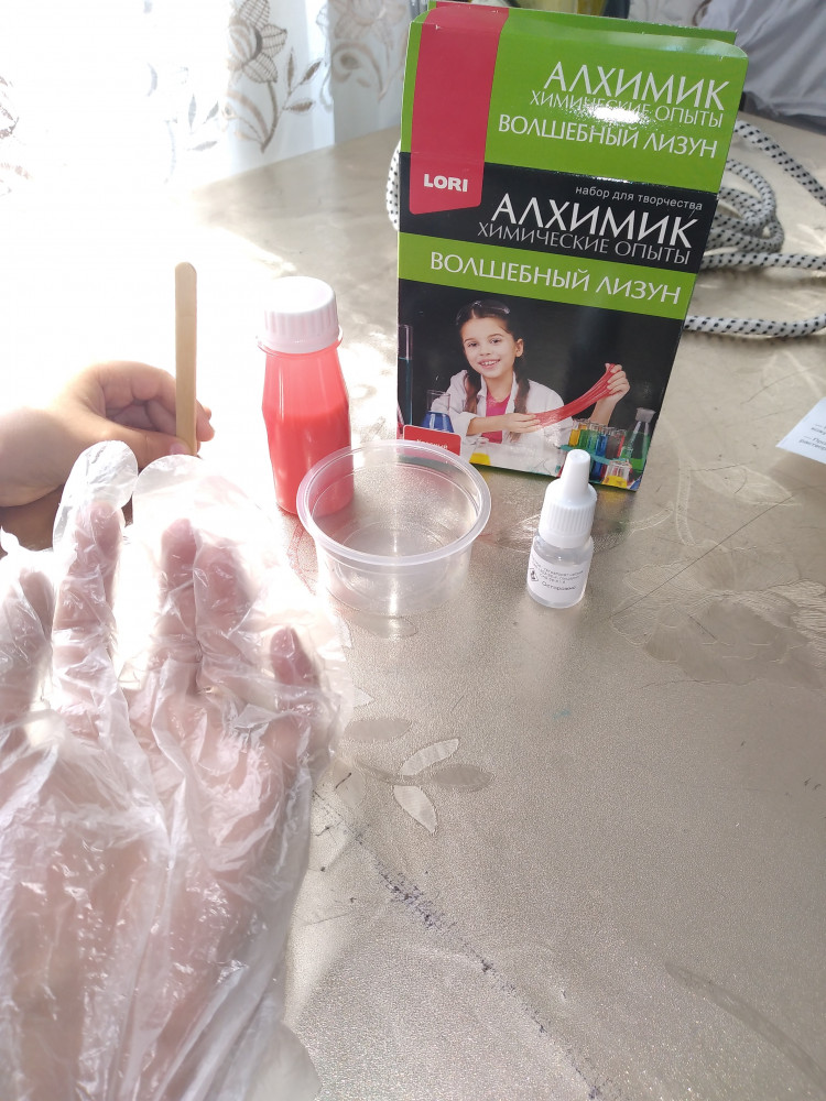 Набор хороший, ребенок доволен, запах клубники, процесс изготовления легкий, даже не надевали перчатки из набора, слайм умеренно липкий, хорошо тянется. Спасибо.