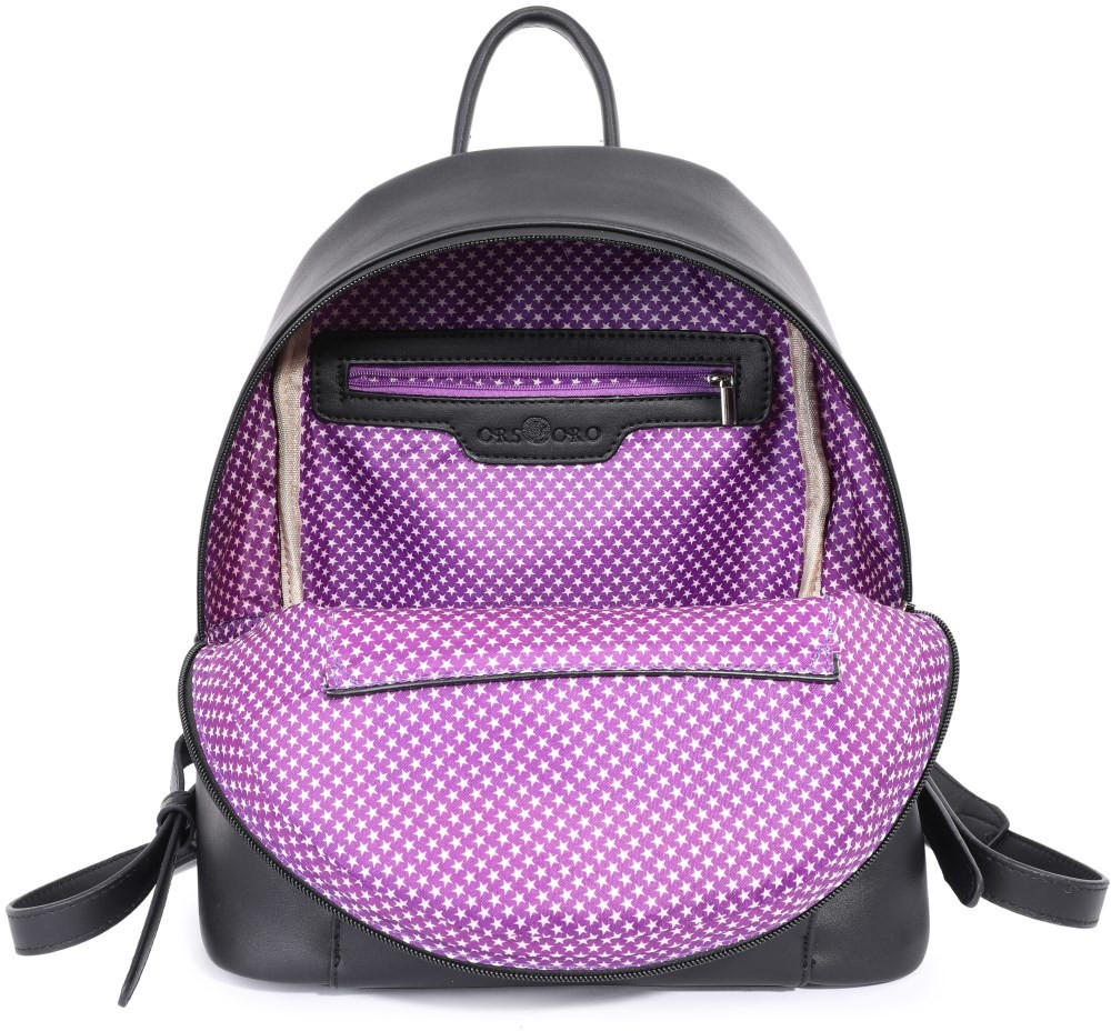 Рюкзак женский выполнен из высококачественной искусственной кожи. Благодаря этому он будет радовать вас долгое время не теряя своих функциональных характеристик и визуальной привлекательности в течение всего срока эксплуатации. Имеется одно отделение на молнии, а также карман с клапаном на магнитной кнопке на передней стенке. Внутри карман для телефона и карман на молнии.