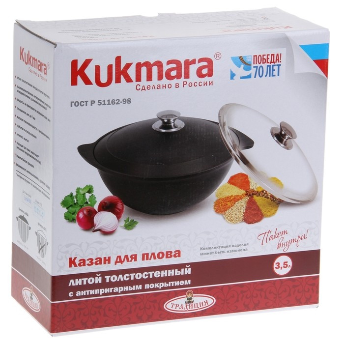 Неповторимый вкус томления, консервативный дизайн, надежность и великолепное качество казана торговой марки Kukmara покорят вас с первого взгляда!