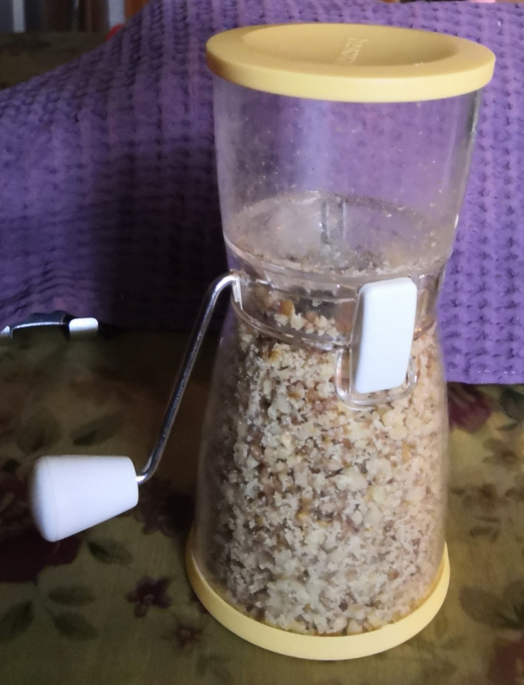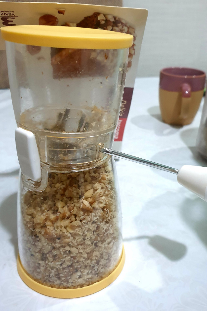 Пропала необходимость измельчать орехи скалкой или с помощью блендера😊 Необходимая консистенция орешков👍