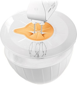 При взбивании миксером, крышка действительно защищает от разбрызгивания теста. Немного необходимо приспособиться и миксер держать лучше под определенным углом.