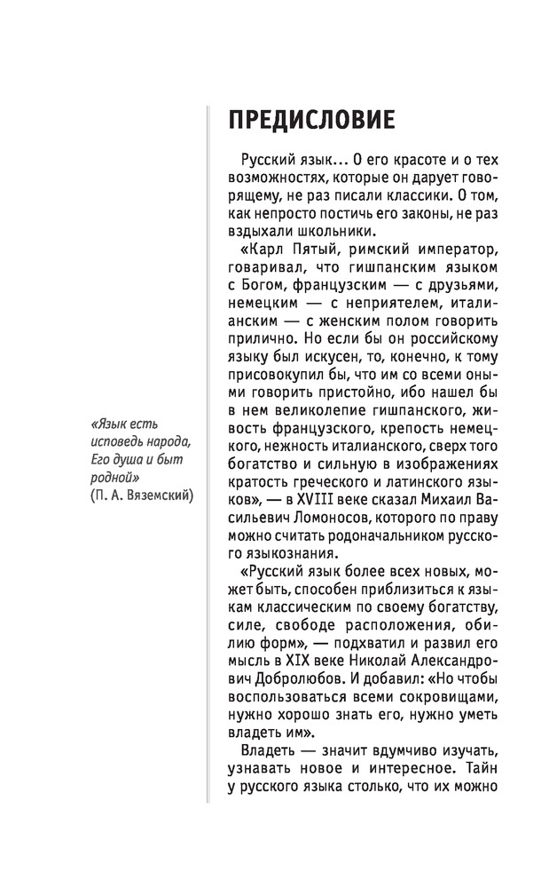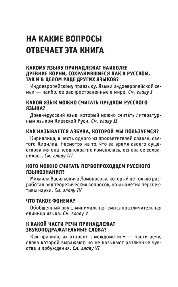 Русский язык. Для тех, кто хочет все успетьВ данный момент этот товар отсутствует в продаже. Возможно, у нас найдется аналогичный или похожий товар здесь. Серия: Энциклопедия быстрых знаний (обложка) Человек, с рождения говорящий на русском языке, как правило, не задумывается о его красотах — но в той или иной степени пользуется богатствами, которые достались ему от многих и многих поколений предков. Для того же, чтобы использовать это наследие в полной мере, нужно обратиться к истории языка, посмотреть, как он развивался. Но ведь развитие — процесс непрерывный! И сегодня язык тоже меняется сообразно требованиям времени, дабы обслуживать все стороны нашей жизни. Чем лучше мы знаем язык, на котором говорим, тем интереснее мы как собеседники, убедительнее как ораторы... У русского языка немало тайн. Наша книга, конечно же, раскроет лишь немногие из них, она невелика по объему. Однако мы уверены — этого будет достаточно, чтобы вдумчивый читатель пошел дальше по пути, который она подсказывает, — к новым и новым открытиям! |