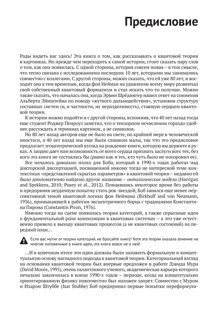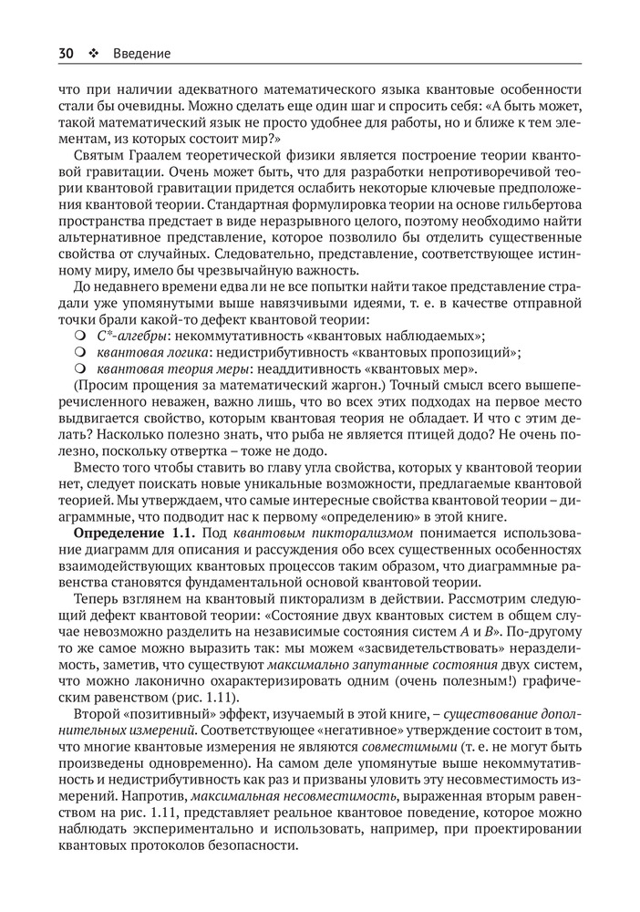 💳 Оплатить за товар можно при получении 🇰🇿 Есть бесплатная доставка по Казахстану от 1 дня 🎁 Копите бонусы с каждой покупки Не имеющие аналогов особенности квантового мира в этой книге объясняются на языке диаграмм — новаторском наглядном методе изложения сложных теорий. Применяемый формализм позволяет выработать интуитивное понимание квантовых особенностей без сложных вычислений — для чтения достаточно базовой математической подготовки. Это чисто диаграммное изложение квантовой теории — плод 10-летних исследований, объединяющий классические методы линейной алгебры и гильбертовых пространств с передовыми достижениями в области квантовых вычислений и оснований квантовой теории. |