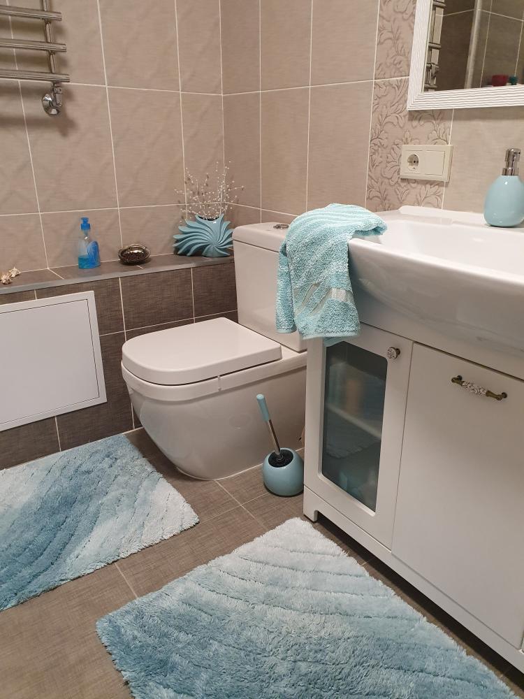 Расцветка как на фото. Взяла в комплект к ванным коврикам. Цвет подошел один в один. Полотенце не совсем плотное, как заявлено в описании. Впитываемость очень хорошая, 100 % хлопок.