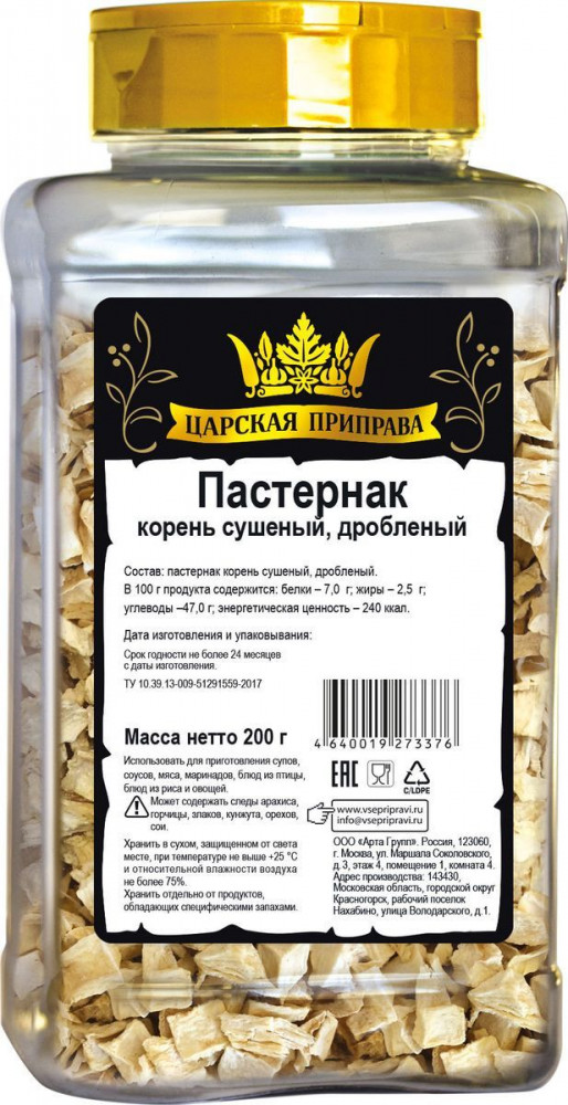 150 г куплен на flipУпакована специя в пластиковую баночку, хорошего качества, крышка имеет два отдела, горсткой насыпать или как через сито. Специя с хорошим сроком хранения. На вкус пастернак немного сладит. Добавляю в супы и овощные рагу, мне очень нравится. Спасибо флип!